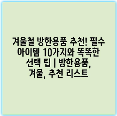 겨울철 방한용품 추천! 필수 아이템 10가지와 똑똑한 선택 팁 | 방한용품, 겨울, 추천 리스트