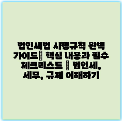 법인세법 시행규칙 완벽 가이드| 핵심 내용과 필수 체크리스트 | 법인세, 세무, 규제 이해하기