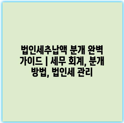 법인세추납액 분개 완벽 가이드 | 세무 회계, 분개 방법, 법인세 관리에 대해 자주 묻는 질문 TOP 5