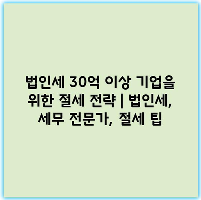 법인세 30억 이상 기업을 위한 절세 전략 | 법인세, 세무 전문가, 절세 팁 에 대해 자주 묻는 질문 TOP 5