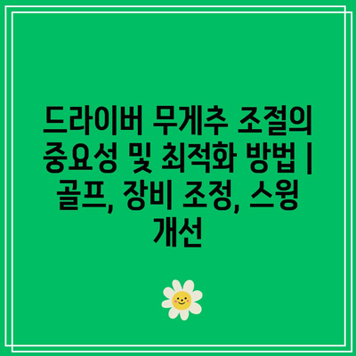 드라이버 무게추 조절의 중요성 및 최적화 방법에 대해 이야기해보겠습니다. 골프에서 드라이버는 거리와 정확도를 결정하는 핵심 장비입니다. 무게추 조절은 스윙의 일관성을 높이고 공의 탄도를 최적화하는 데