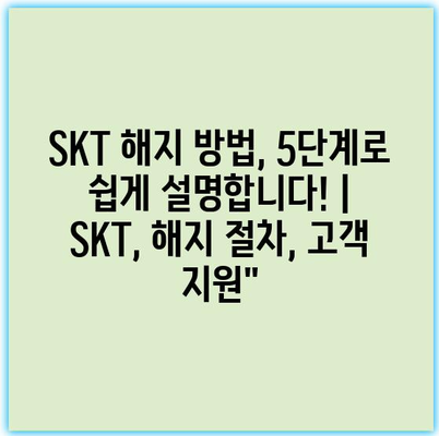 SKT 해지 방법, 5단계로 쉽게 설명합니다! 많은 사용자들이 통신사 해지를 고려할 때 정확한 절차를 알아두는 것이 중요합니다. 이번 글에서는 SKT의 해지 방법을 간단하면서도 명확하게 5단계로