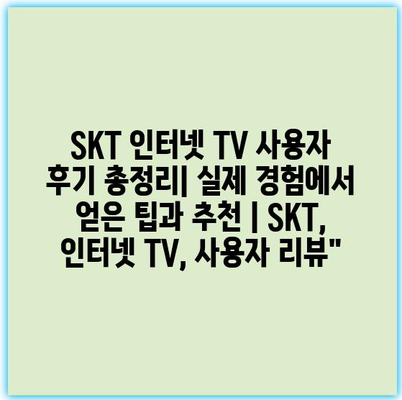 SKT 인터넷 TV 사용자 후기 총정리는 많은 사용자들의 실제 경험을 바탕으로 작성되었습니다. 이번 글에서는 SKT 인터넷 TV의 사용 후기와 함께 유용한 팁을 공유하고자 합니다. 먼저,