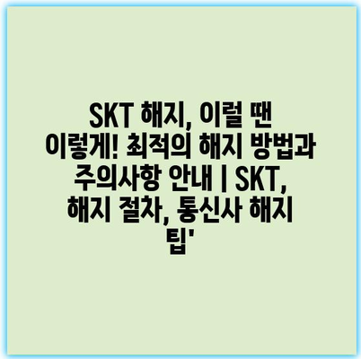 SKT 해지, 이럴 땐 이렇게! 최적의 해지 방법과 주의사항 안내 | SKT, 해지 절차, 통신사 해지 팁 많은 사람들이 통신사 해지를 고민할 때가 있습니다. 특히
