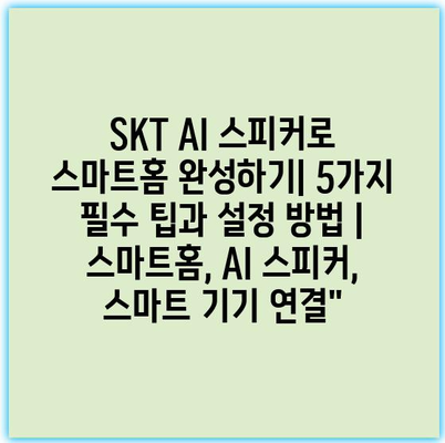 SKT AI 스피커로 스마트홈 완성하기| 5가지 필수 팁과 설정 방법 | 스마트홈, AI 스피커, 스마트 기기 연결 스마트홈의 세계는 이제 우리 일상 속에 깊숙이 들어왔습니다.