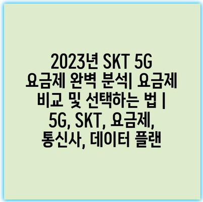 2023년 SKT 5G 요금제 완벽 분석을 통해 여러분에게 요금제 비교 및 선택하는 방법을 소개합니다. 현재 SKT에서는 다양한 5G 요금제를 제공하고 있으며, 각 요금제마다 특성과 혜택이