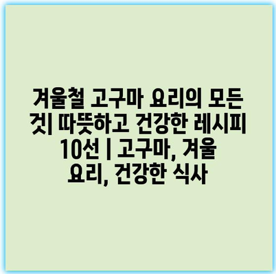 겨울철 고구마 요리의 모든 것| 따뜻하고 건강한 레시피 10선 | 고구마, 겨울 요리, 건강한 식사 겨울이 되면 생각나는 고구마는 따뜻하고 포근한 맛으로 우리를 위로해줍니다. 이번