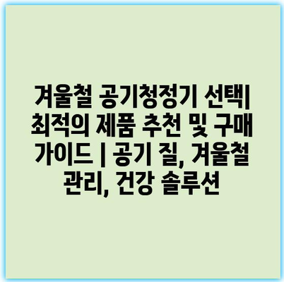 겨울철 공기청정기 선택| 최적의 제품 추천 및 구매 가이드 | 공기 질, 겨울철 관리, 건강 솔루션 추운 겨울철, 실내에서 보내는 시간이 많아지는 만큼 공기 질에