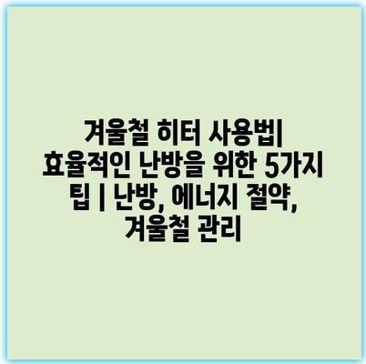 겨울철 히터 사용법, 효율적인 난방을 위한 5가지 팁을 소개합니다. 겨울철, 난방을 위해 히터를 사용하는 것은 필수적입니다. 하지만 효율적으로 사용하지 않으면 에너지 비용이 skyrocketing하게 될 수