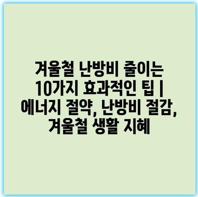 겨울철 난방비 줄이는 10가지 효과적인 팁 | 에너지 절약, 난방비 절감, 겨울철 생활 지혜 겨울이 다가오면 난방비가 많이 나오는 고민을 하게 됩니다. 이럴 때 활용할