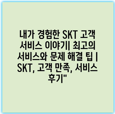 내가 경험한 SKT 고객 서비스 이야기| 최고의 서비스와 문제 해결 팁 | SKT, 고객 만족, 서비스 후기 최근 SKT의 고객 서비스를 이용하면서 매우 만족스러운 경험을