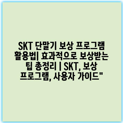 SKT 단말기 보상 프로그램 활용법| 효과적으로 보상받는 팁 총정리 | SKT, 보상 프로그램, 사용자 가이드 SKT의 단말기 보상 프로그램은 고객이 보유한 단말기의 가치를 인정받고, 새로운