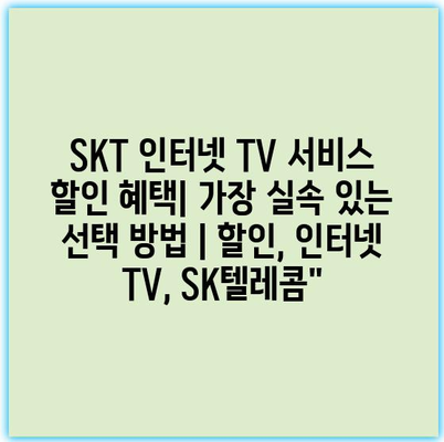 SKT 인터넷 TV 서비스 할인 혜택| 가장 실속 있는 선택 방법 | 할인, 인터넷 TV, SK텔레콤 최근 많은 사람들이 인터넷 TV 서비스를 찾고 있습니다. 그중에서도