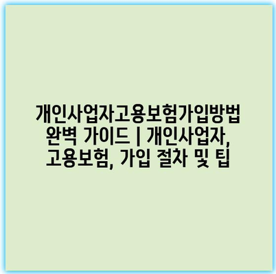 개인사업자고용보험가입방법 완벽 가이드 | 개인사업자, 고용보험, 가입 절차 및 팁 개인사업자는 고용보험에 가입함으로써 직원 보호와 안전한 경영 환경을 구축할 수 있습니다. 고용보험 가입은 어렵지 않으며,