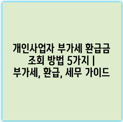 개인사업자 부가세 환급금 조회 방법 5가지 | 부가세, 환급, 세무 가이드 부가가치세(부가세)는 사업자가 소비자에게 상품 또는 서비스를 제공할 때 발생하는 세금입니다. 하지만 많은 개인사업자들은 환급