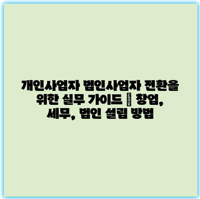 개인사업자 법인사업자 전환을 위한 실무 가이드 | 창업, 세무, 법인 설립 방법에 대해 알아보겠습니다. 이번 글에서는 개인사업자에서 법인사업자로 전환하는 과정에 대해 자세히 설명하겠습니다. 법인 전환의