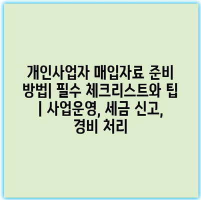 개인사업자 매입자료 준비 방법| 필수 체크리스트와 팁 | 사업운영, 세금 신고, 경비 처리에 대한 내용을 소개합니다. 사업 운영을 위해 매입자료를 잘 준비하는 것은 매우 중요합니다.