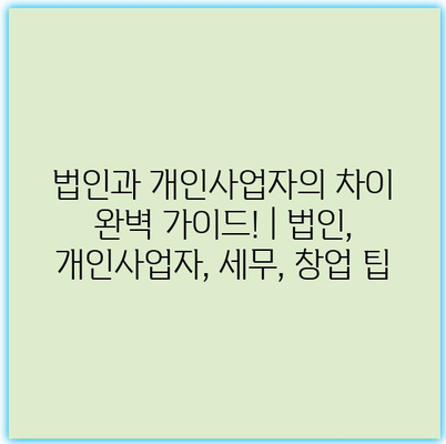 법인과 개인사업자의 차이 완벽 가이드! | 법인, 개인사업자, 세무, 창업 팁 많은 사람들이 창업을 고민할 때 가장 먼저 떠오르는 두 가지 형태는 법인과 개인사업자입니다. 이
