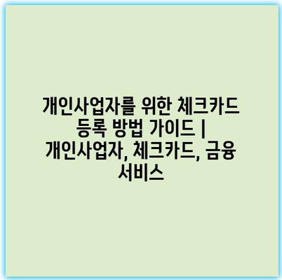 개인사업자를 위한 체크카드 등록 방법 가이드 | 개인사업자, 체크카드, 금융 서비스 개인사업자라면 체크카드는 필수입니다. 체크카드는 사업 운영 중 발생하는 경비를 효율적으로 관리할 수 있는 좋은