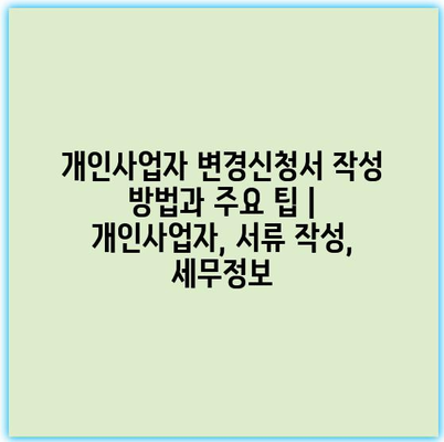 개인사업자 변경신청서 작성 방법과 주요 팁을 알아보겠습니다. 변경신청서는 개인사업자의 정보 변경을 위해 꼭 필요한 서류입니다. 주로 상호명, 사업장 주소, 업종 변경 등이 포함됩니다. 첫 번째로,