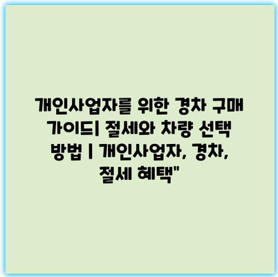 개인사업자를 위한 경차 구매 가이드| 절세와 차량 선택 방법 | 개인사업자, 경차, 절세 혜택 개인사업자는 경차를 구매함으로써 여러 가지 절세 효과를 누릴 수 있습니다. 경차는