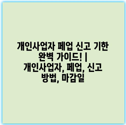 개인사업자 페업 신고 기한 완벽 가이드! | 개인사업자, 페업, 신고 방법, 마감일에 대한 자세한 정보를 제공합니다. 개인사업자를 운영하다 보면 종종 페업을 결심해야 하는 상황이 생길