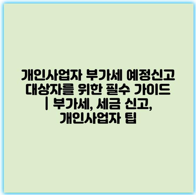 개인사업자 부가세 예정신고 대상자를 위한 필수 가이드입니다. 부가세는 사업을 운영하는 데 있어 아주 중요한 요소며, 정확한 신고와 납부가 필요합니다. 부가세는 주기적으로 신고해야 하며, 이는 사업자의
