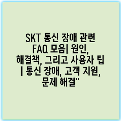 SKT 통신 장애 관련 FAQ 모음| 원인, 해결책, 그리고 사용자 팁 | 통신 장애, 고객 지원, 문제 해결” 에 대해 자주 묻는 질문 TOP 5